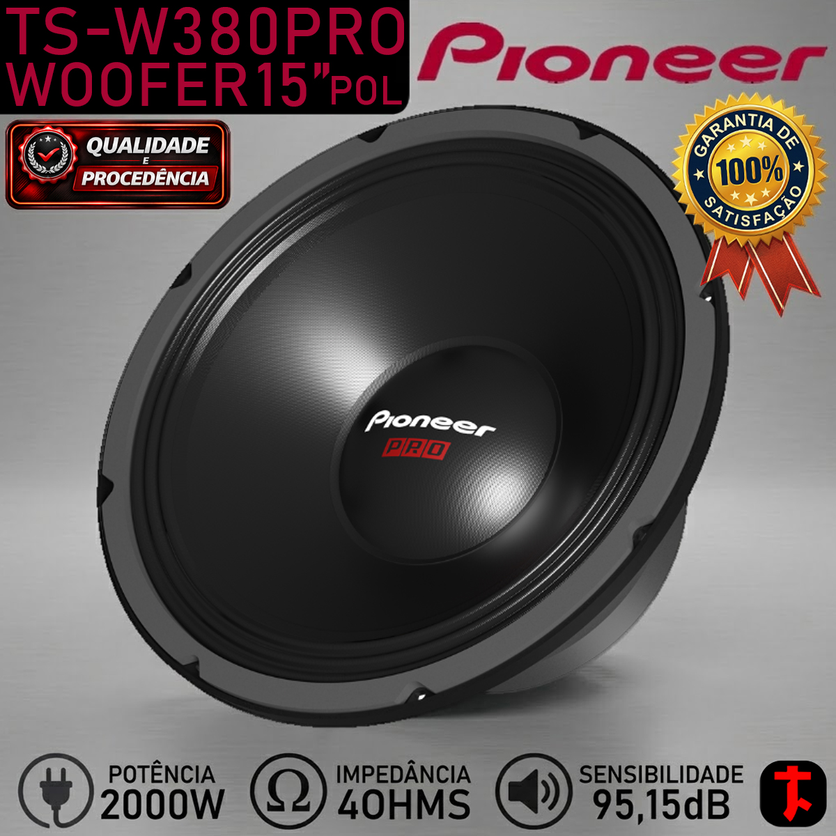O TS-W380PRO é o woofer de 15 polegadas da linha Pioneer PRO, desenvolvido para entregar graves intensos, profundos e com alto deslocamento de ar — ideal para quem busca pressão sonora com fidelidade e robustez. Com potência de 2000 W RMS e sensibilidade de 95,15 dB, este modelo é capaz de atingir níveis elevados de SPL, atendendo com excelência a projetos de som para fora, como paredões, caixas trio de grande porte, sistemas quadri-way e caixas bob.